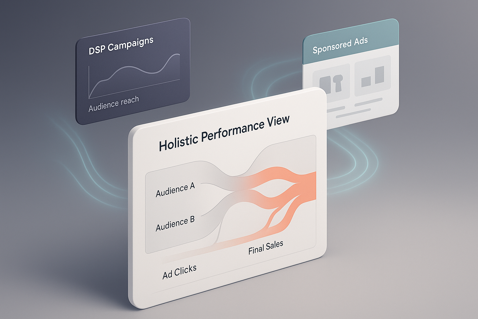 Stop guessing the ROI of your awareness campaigns. We directly connect your upper-funnel DSP data with lower-funnel Sponsored Ads and sales data to prove the value of your full-funnel strategy.